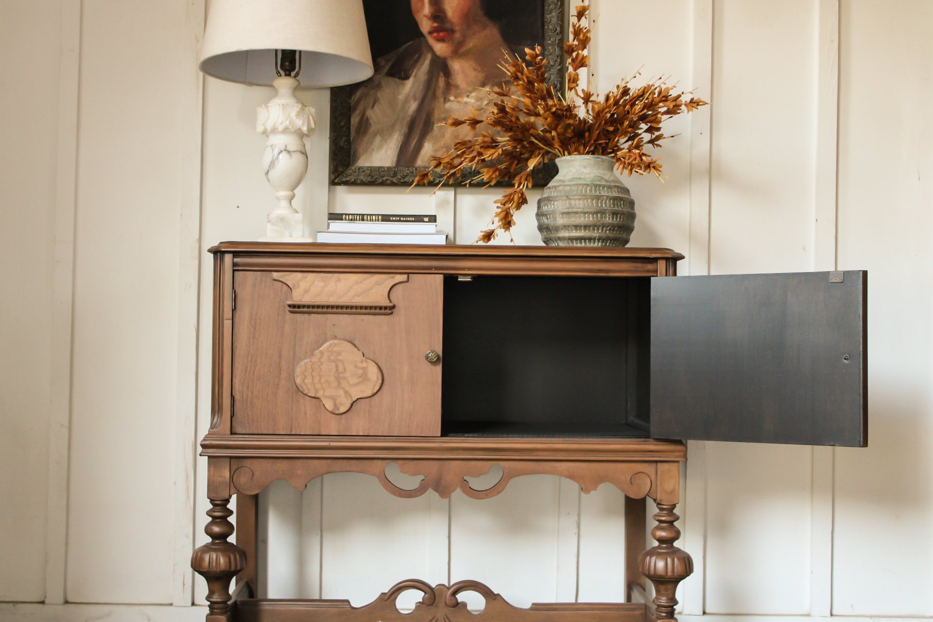 It’s very rare to ever come across one of these smaller antique buffets!! They make perfect entry tables or bathroom vanities. We completely refinished this one, stripping it down to bare wood, staining it in antique oak, and sealing it with matte top coat.