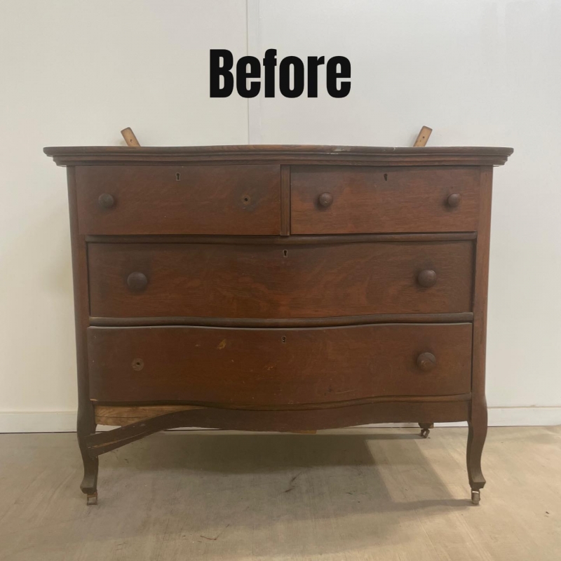 When my client brought this piece to me, she had her doubts if it was even worth “saving” or refinishing. I said it definitely was, especially since it was a piece that had been in her family. New wheels, new hardware, some repairs and fresh paint and stain and now it is ready to be a display piece!