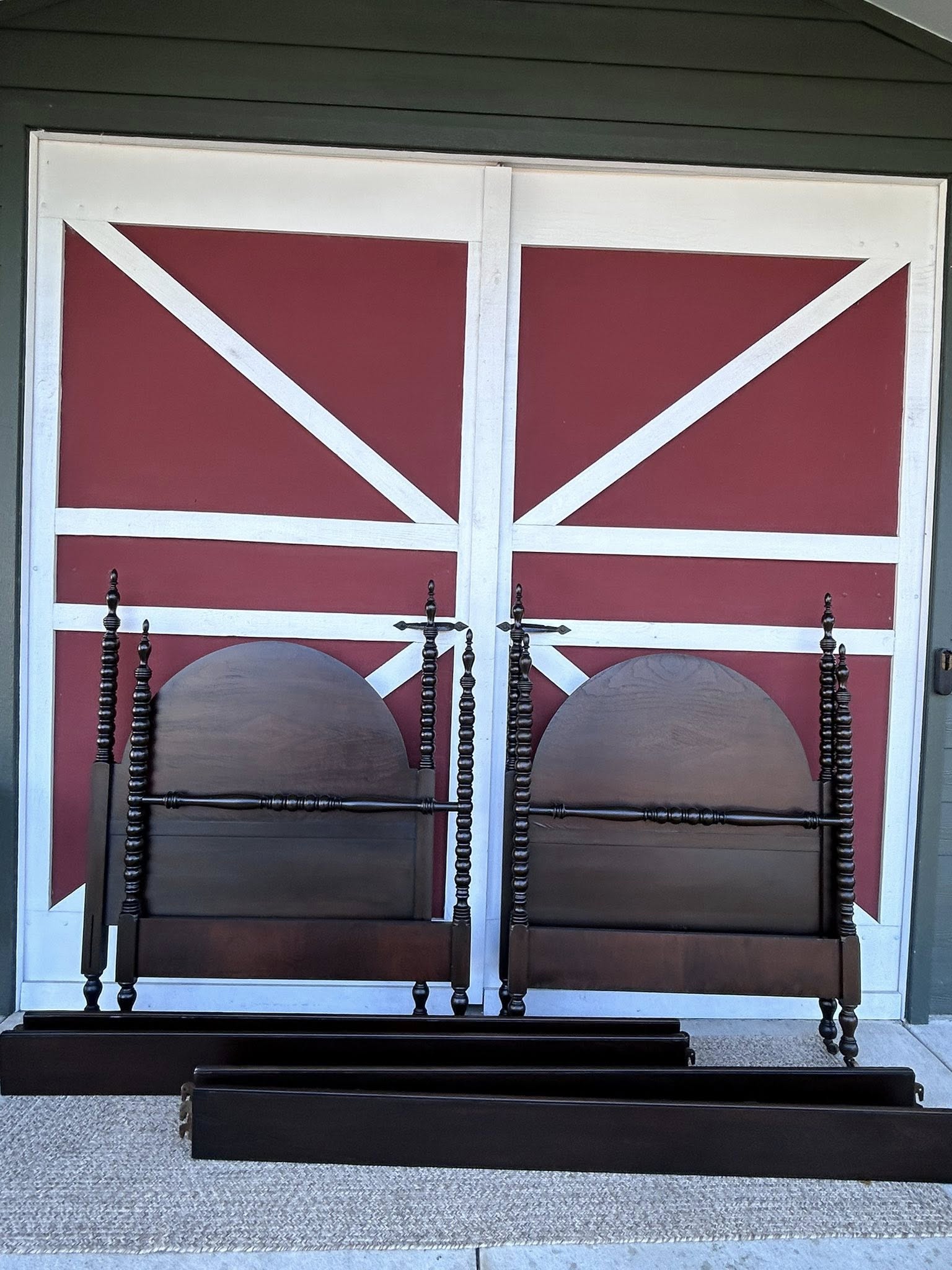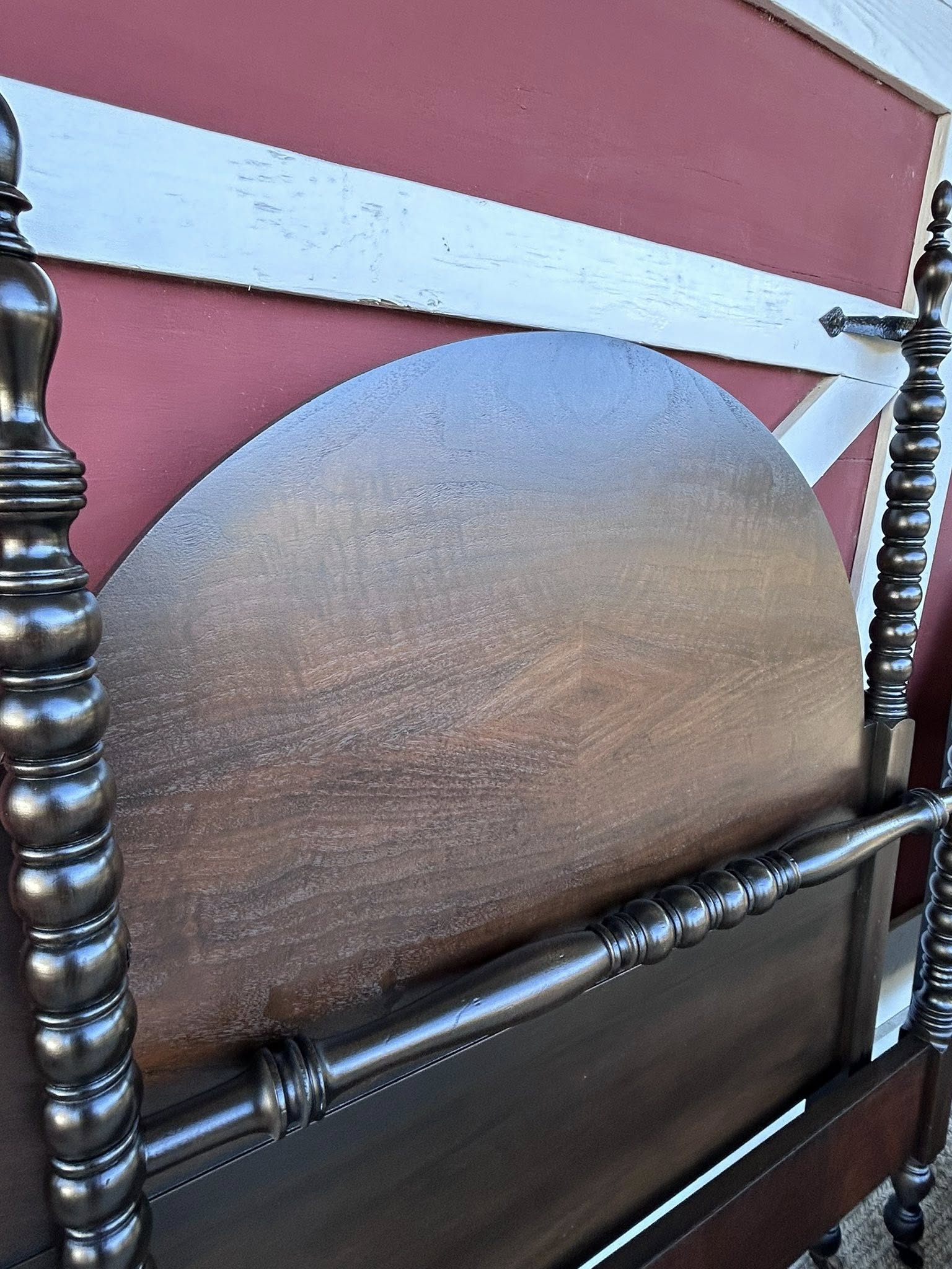 Lots of dry wood, loose veneer and years of barn dust. Completely stripped and refinished in General Finishes WB Tobacco then sealed with a satin lacquer.
