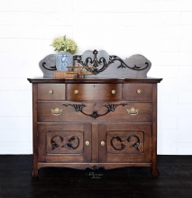 When my client brought this piece to me, she had her doubts if it was even worth “saving” or refinishing. I said it definitely was, especially since it was a piece that had been in her family. New wheels, new hardware, some repairs and fresh paint...