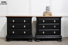The tops were stripped and stained in Hickory by General Finishes and the body painted in General Finishes Lamp Black. The hardware really makes a statement, the previous pulls were removed, the holes were filled and the new knobs installed.