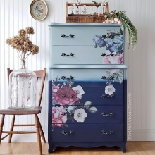 "They might be calling for snow outside but inside I'm thinking Spring! This vintage solid wood tall chest was painted and blended with General Finishes Persian Blue and Coastal Blue, the perfect colors to complement this gorgeous floral transfer....