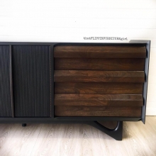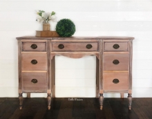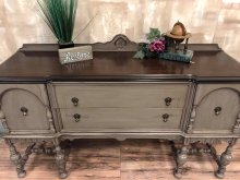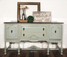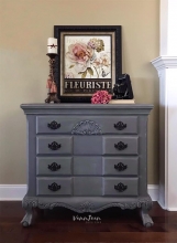 "I heart grays! This little beauty was refinished using a base of General Finishes Driftwood. Her gorgeous details were accented in a black glaze and her original hardware renewed in a matching hammered black finish." - VannJean Designs...