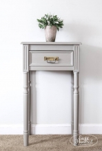 "This little table was sporting a heavy cherry stain and an ugly chippendale handle when I got my hands on it. I swapped the handle out for an older one with worn patina, and gave it a neutral gray treatment with General Finishes Empire Gray Chalk...