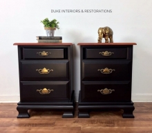 "These beautiful solid wood nightstands were selected from our unfinished inventory and refinished in Lamp Black and Black Cherry Water Based Stain by General Finishes. They turned out gorgeous!!" - Painted Paradise, by Duke Interiors and...