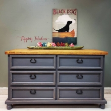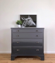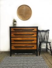 "This is my favorite color combo. I’ve stripped the drawers, left them natural, and sealed them with Howard’s beeswax. The body has been painted in General Finishes Lamp Black and sealed to protect." - Re-Luv'd Furniture