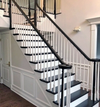 "Decided to do away with the dated carpeted wood stairs and go with a modern jet black and and white look. For the black, we used General Finishes Gel Stain with the General Finishes High Performance flat as the top coat, which gave the treads a...