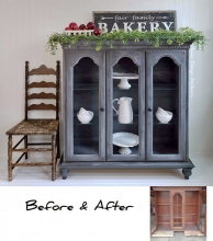 "Recently transformed this china cabinet top with a custom mix of Black Pepper, Chapin Gray, French Vanilla, Chocolate & Antique Walnut Gel Stain used as a glaze. Added beautiful feet & new knobs and now it fits perfectly with today's style...