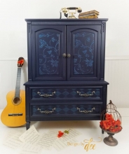 "Remember that sweet little yellow armoire that I posted here some time ago? Well, I had a customer snatch her up before the first drop of paint touched her. Together, we came up with a vision for her, and here it is. All done up in General Finishes...