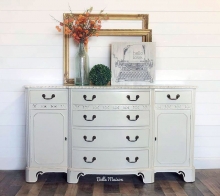 Incredible dresser by Boxwood & Spruce. They painted with GF Slate Gray Chalk Style Paint and refreshed the drawers with Old Barn Milk Paint oil+wax.