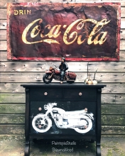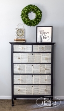 "A little decoupage action going on this empire chest. It sure is going to look cool in this guy’s house when he goes back to college‼️Finished with a General Finishes Lamp Black wash :)" - Paintopia Studio