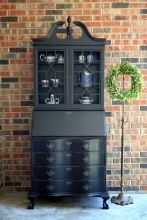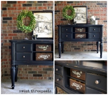 "Just over here loving this piece!! Black is always a beautiful choice and we hope our client can't wait to get this one back!! We used General Finishes Lamp Black and sealed with their High Performance Topcoat." - Refurbished by Sweet Threepeats...