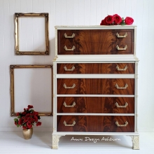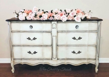 "French Provincial Furniture always has such a classy high end, yet relaxed look to it. With its carved and curved feet and all the delicate details it has such a luxurious style. This French Provincial dresser was painted in layers of General...