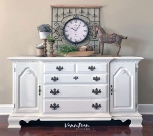 Timeless buffet in General Finishes Antique White Milk Paint by Belle Maison.