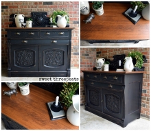 "Loving this buffet! What an amazing coffee bar this would make :-) Cabinet and drawers offer some really nice storage and you can even use the key to lock it up!! This antique was lovingly refurbished using General Finishes Lamp Black Milk Paint...
