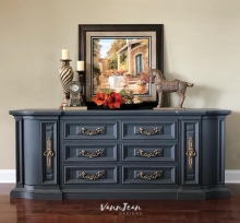 "Every room needs a statement piece and this one definitely demands attention! Refinished in a deep, rich gray with the original hardware highlighted in an...