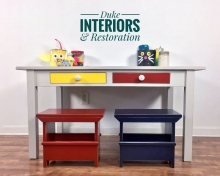 "What a great little table for kids to work on their masterpieces, and If yours are anything like mine we have masterpieces everyday of the week! This adorable little chalkboard table is solid wood with a removable center piece that is a chalk board...