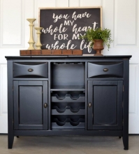 "The only thing this pretty little wine cabinet is missing is the wine :-) Our client wanted General Finishes Lamp Black with High Performance Top Coat in Flat. We are loving the results!! " - Refurbished by Sweet Threepeats