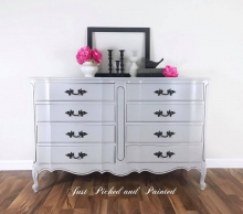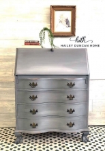 This eight drawer beauty has been lovingly hand painted in General Finishes Seagull Gray then given a black glaze in the details. It’s absolutely STUNNING!!!" - Just picked and painted...