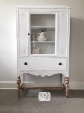 "Antique cabinet painted in General Finishes Snow White. Got to love all the details on this one ❤️" - Kenzie Lynn Designs