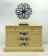 "I’m usually a gray and black person but for this piece I wanted a warm and fun color. Buttermilk Yellow Milk Paint was just the color for the job. I love it and it complements the decorative paper on the middle drawers perfectly." - KimG Design...