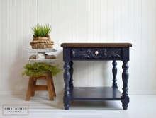 "This vintage Lane end table is sitting pretty with the help of General Finishes Coastal Blue (Milk Paint) and Antique Walnut Gel Stain. Sealed for a slight sheen with HPTC in Satin." - Amini Design Ashburn