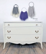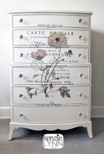 "Be still my heart ❤️ This antique dresser has received the royal makeover from top to bottom, and inside out. Finished in General Finishes Antique White and the pièces de résistance, a gorgeous transfer by Prima Marketing Inc." - Kenzie Lynn...