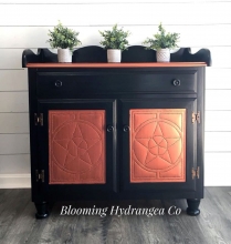 "Persimmon Bliss is finally making her debut. Doesn’t she exhibit natural beauty and warmth? She’s really going to be the focal point on her new home. We gave this china cabinet a two-toned finish using General Finishes, Java Gel Stain and Persimmon...