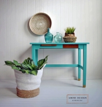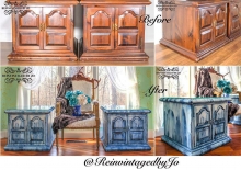 Reinvintaged by Jo created this one of a kind look with General Finishes Coastal Blue and Snow White Milk Paint.