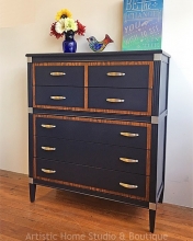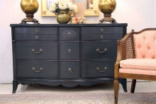 "We are in love with "Lord Greyborne"! Painted in Queenstown Gray, lightly distressed, glazed in Pitch Black and top coated with High Performance Satin. Such a rich look for any piece." - Reblessed, LLC