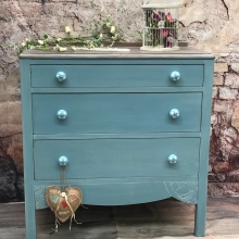 Stylish dresser in General Finishes Coastal Blue Milk Paint by The Artistic Home Studio and Boutique.
