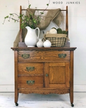 "This family heirloom is finished in General Finishes Nutmeg Gel Stain and sealed with Arm R Seal for a super durable finish that will last another 100 years." - Wood Junkies