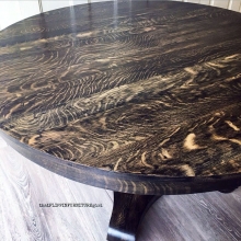 Stunning tiger oak quarter sawn antique dining table finished with General Finishes Black Gel Stain.