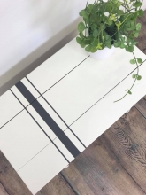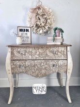 Beautiful stenciled side side table in GF Antique White Milk Paint and Antique Walnut Gel Stain by Kenzie Lynn Designs.