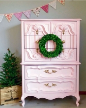 "And here she is.....and she’s pretty FAB if I do SAY so myself! Gorgeous vintage French Provincial solid wood dresser is in flawless condition, and has been hand painted in the palest shade of seashell pink! With beautiful curves and gorgeous...