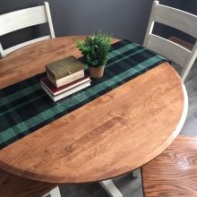 "We refinished this beautiful but well loved table using General Finishes Nutmeg Gel Stain and Antique White Milk Paint with Van Dykes Glaze plus completed their new Burress Amish chairs to match." - ReFind Design by Coco Clare