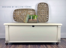 "Another stunning custom piece! This cedar chest has been transformed into a beautiful coffee table. Painted in General Finishes Antique White and Linen Milk Paint. Sealed all over with HPTC in flat." - Designs by Willow Farms