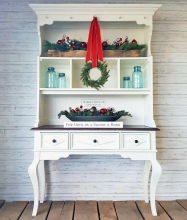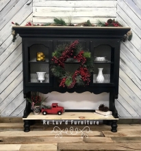 "This beautiful hutch/cabinet creation would be perfect to accessorize for the holidays with pops of color. This has been refinished in my favorite—General Finishes Lamp Black and sealed with their High Performance flat top coat." - Re-Luv'd...