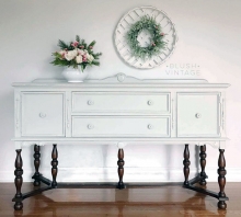 "Here is my something Merry & Bright! So much to say about this stunning buffet. It was painted in General Finishes Seagull Gray Milk Paint and lightly distressed. Those gorgeous legs have been finished with Wise Owl lavender furniture salve...