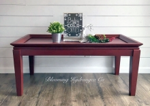 This adorable coffee table by Blooming Hydrangea Co was painted with GF Tuscan Red Milk Paint and sealed with High Performance Topcoat.
