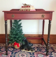 "This little desk is ready for the holidays! Styled in Tuscan Red with Van Dyke Brown Glaze and Java Gel Stained legs, it’s quite the show stopper." - Daylily Custom Design