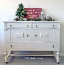 "Check out this gorgeous old buffet that I’ve just completed! It’s painted in General Finishes Antique White Milk Paint and lightly distressed." - Kristin's Krazy Garage, LLC