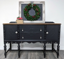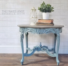 Absolutely stunning table by The Frayed Knot Antiques and Design in GF Persian Blue and Van Dyke Brown Glaze Effects to make all those details pop!
