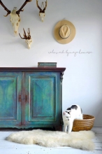 We're in love with this brilliant piece with layers of GF Coastal Blue, Brick Red, Lime Green and Emerald Milk Paint by ReLoved by Maja Komasa!