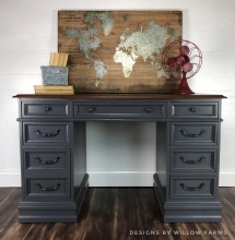 "Queenstown Gray you are my new fav color!! This desk looks so handsome in these colors by General Finishes. Painted in Queenstown Gray and the top was stained with Java Gel Stain. Sealed all over with HPTC in Satin!" - Designs by Willow Farms...