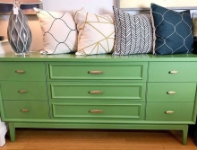"You could design a whole room around this one. The color is so rich and unique! The hardware adds a bit of antique brass flair to the mid century modern lines. Definitely a showstopper!" - The...