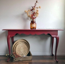 Gorgeous sofa table in GF Holiday Red Milk Paint by Katie & Co. Furniture Restorations!