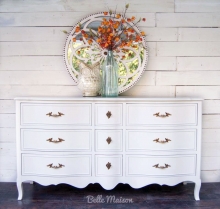 "We just finished up this gorgeous full size French Provincial bedroom suite! It is painted in our favorite, Antique White Milk Paint by General Finishes." - Belle Maison
