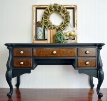 "Sharing a desk we refinished in General Finishes Lamp Black and sealed with High Performance Top Coat in Satin." - Refurbished by Sweet Threepeats