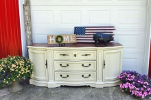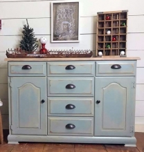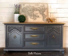 "We love how this buffet turned out! This piece is headed to Vintage Market Days of N. Alabama painted in General Finishes Queenstown Gray with a natural top sealed with General Finishes Enduro-Var semi gloss urethane." - Belle Maison